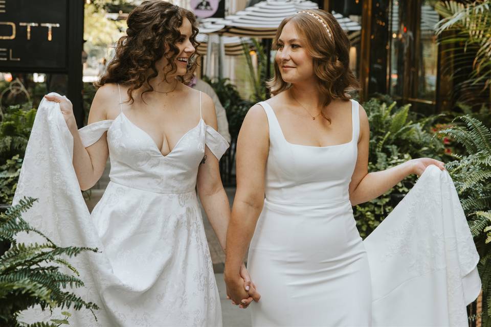 Ann and Michelle were such an amazing bridal team. They were so responsive and reliable throughout the entire process as well as making relevant recommendations as necessary (I’m a bit of a novice when it comes to makeup). The trial went great but there were a few things I wanted to change after I saw pictures and they were super receptive and made all the necessary changes on the wedding day. Not to mention, they were an incredibly calming and joyful presence on the morning of such an important day! After my hair and makeup was done, I honestly have never felt more beautiful and confident! I truly can’t thank them both enough for helping to make my wedding day the best ever!