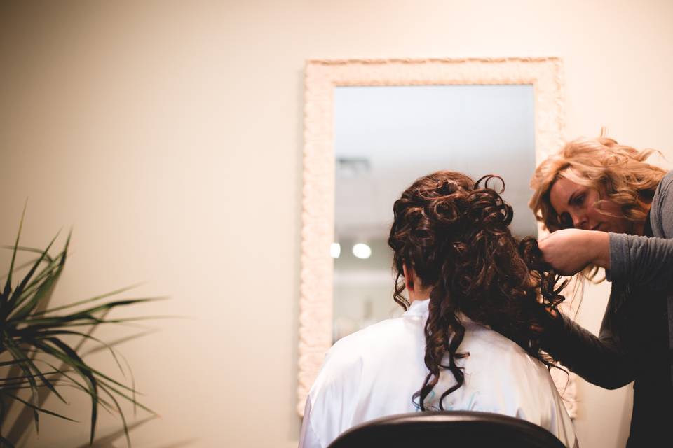 Weddings are one of our Specialty’s! Elegant, Sophisticated and Chic, our bridal team will create a custom look for you, the bride, and the entire wedding party for one of the most special events of your life.One of our bridal hair stylists will meet with you to discuss the details of your special event, and review hairstyles that you love and that will be the perfect accent for your wedding gown and hair accessories or veil. When the day arrives we can work from our salon or send our team to your wedding location. Call to schedule your personal consultation. We would Love to be part or Your Special Day!