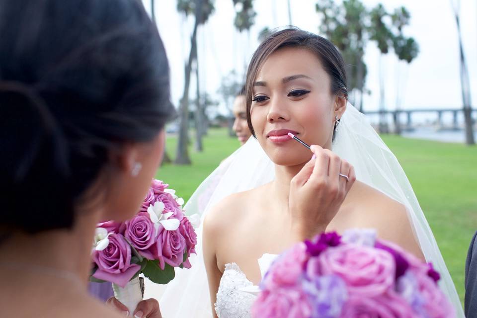 Glam on the Run offers on-location wedding hair and makeup services in San Diego, California. Best known for fresh-faced beauty and impeccable hairstyles, Glam on the Run creates a serene environment for getting ready. The team strives to create a stunning, flawless look that’s also wearable and feels like you. Glam on the Run’s licensed hairstylists and certified makeup artists have been helping southern Californians look and feel their best for over a decade. Services Offered Glam on the Run works on location throughout the San Diego area, including La Jolla, Carlsbad, and and Del Mar. As well as hair and makeup, beauty services include microblading, facials, massages, manicures, pedicures, men’s grooming, and large groups are happily accommodated. Consultations and trials are also offered so that clients may discuss their beauty expectations. Glam on the Run offers a variety of hairstyling options, including blowouts, hair extensions,and updos. The following makeup services are also available: Airbrush makeup Brow and lash tinting Contour makeup Eye makeup Fake lashes Natural makeup Tattoo coverage